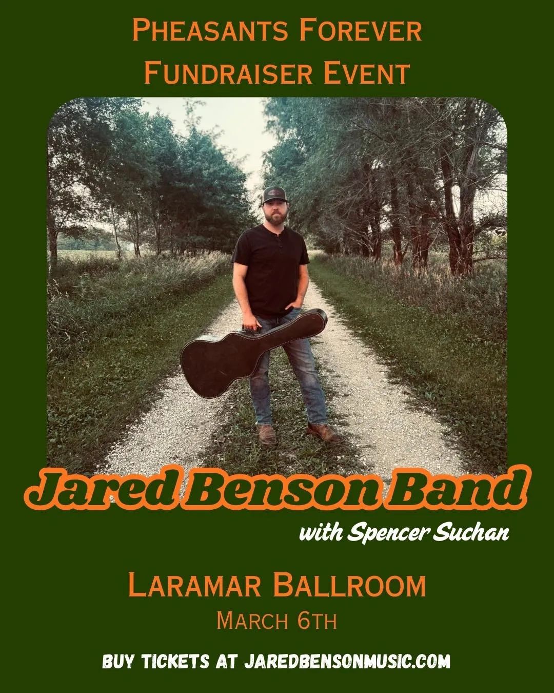 Come Support Pheasants Forever in this Incredible fundraiser event featuring local talent Jared Benson & Spencer Suchan! It's a night to remember, doors open at 7pm! Tickets available in advance at the link below.